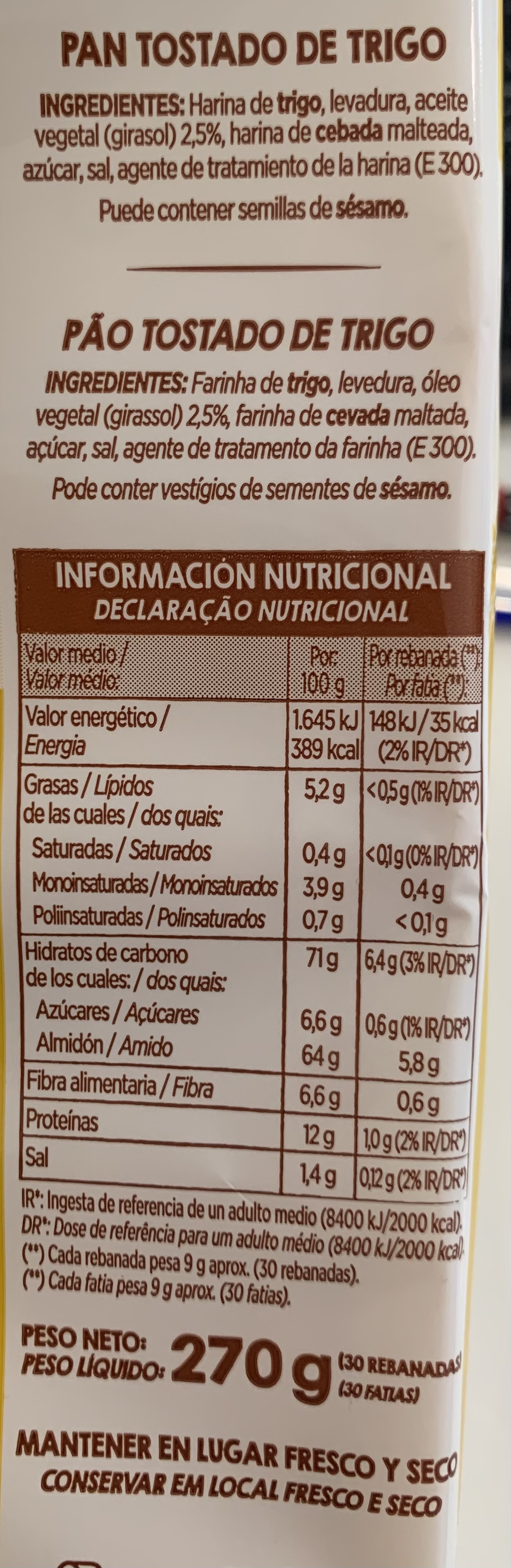 PAN TOSTADO BIMBO BLANCO 30 UNI